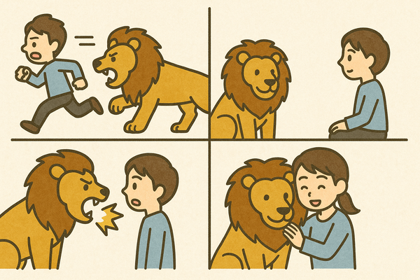 追いかけられるライオンは、挑戦を阻む心の不安を象徴しているのです。