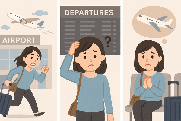 旅行で飛行機に乗り遅れる夢は「楽しみやチャンスを逃す不安」を意味します。